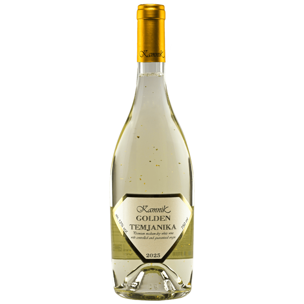 Златна Темјаника е премиум полусуво бело вино добиено од одбрани гроздови Темјаника. Карактеристиките и привлечноста на ова вино се истакнуваат со дoдавањето на нежни ливчиња од вистинско 23-каратно злато во самото вино. Златната Темјаника, освен со својот ултрамодерен, нежно-сјаен изглед, се одликува и со мирис кој е елегантен и сензуален, со комплексни овошни ароми на сува кајсија, кора од портокал и дискретни зачински поттонови. Вкусот е полн, избалансиран, со хармонична свежина и овошно-зачински послевкус. Златните ливчиња присутни во Златна Темјаника се наменети за употреба во гастрономијата, сосема се безбедни за конзумација, и немаат влијание врз вкусот и мирисот на самото вино. Златна Темјаника е вино чие создавање е инспирирано од величенственоста на обичните мигови кои ги споделуваме со другите луѓе. Визуелно присутната екстраваганција и нишката на луксуз кај ова вино претставуваат порака која нe потсетува на убавината на едноставното уживање во животот.